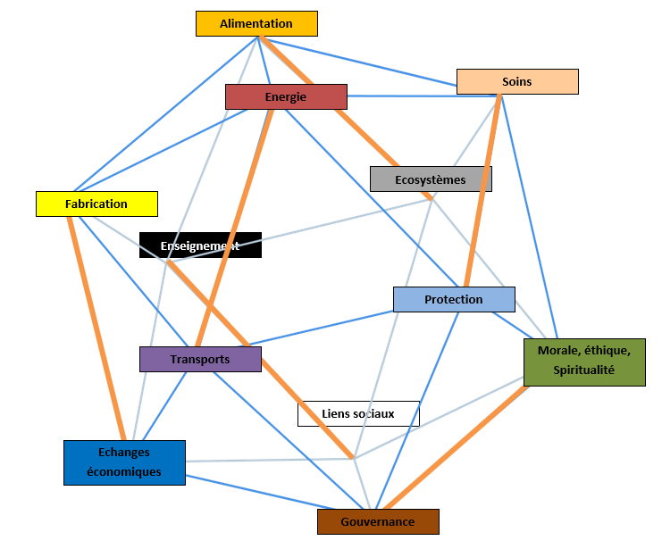 Note sur l'image ci-dessus : les domaines affectés au sommet ne sont pas ceux de de ce manuel (ils sont ici : Les 12 domaines nécessaires à une culture humaine durable) car il s’agit d’une image d’illustration.
